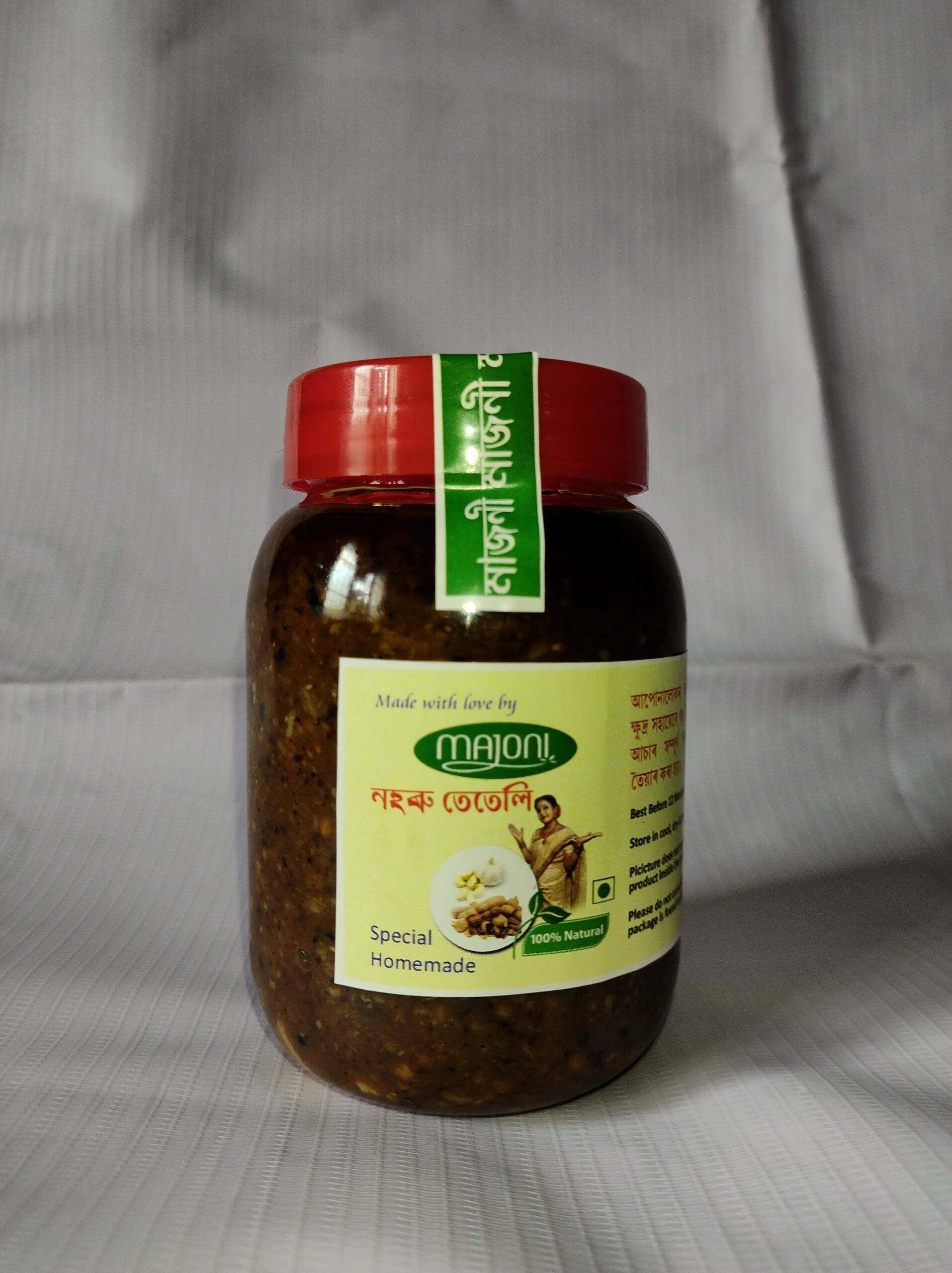 Ingredients – Garlic, tamarind ,lemon juice, black salt , asafoetida ,kachi ghani mustard oil, vinegar and variety of secret spices